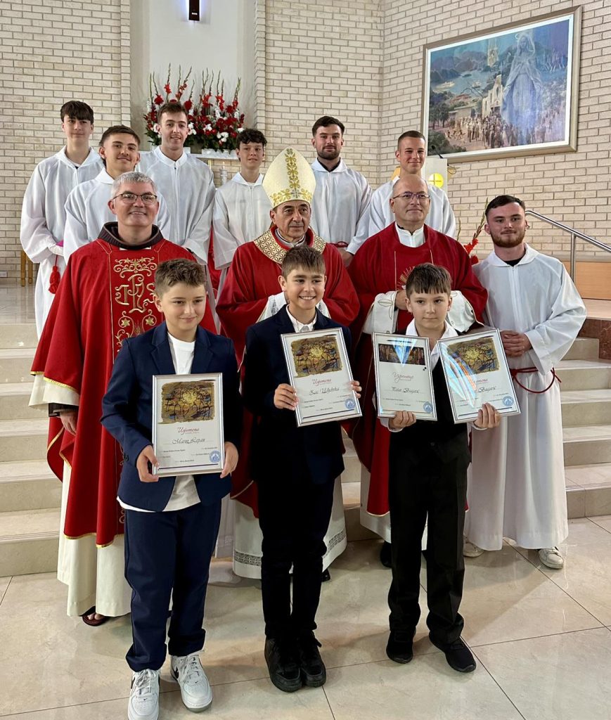 Biskup Medo već sljedeći dan podijelio je tijekom euharistijskoga slavlja u Hrvatskom katoličkom centru u Wollongongu sakrament svete potvrde trojici dječaka. Koncelebrirali su ravnatelj Markić i voditelj HKC-a Wollongong fra Robert Slišković uz brojno sudjelovanje vjernika, skladno pjevanje misijskog zbora i liturgijsku asistenciju mladih članova Centra.