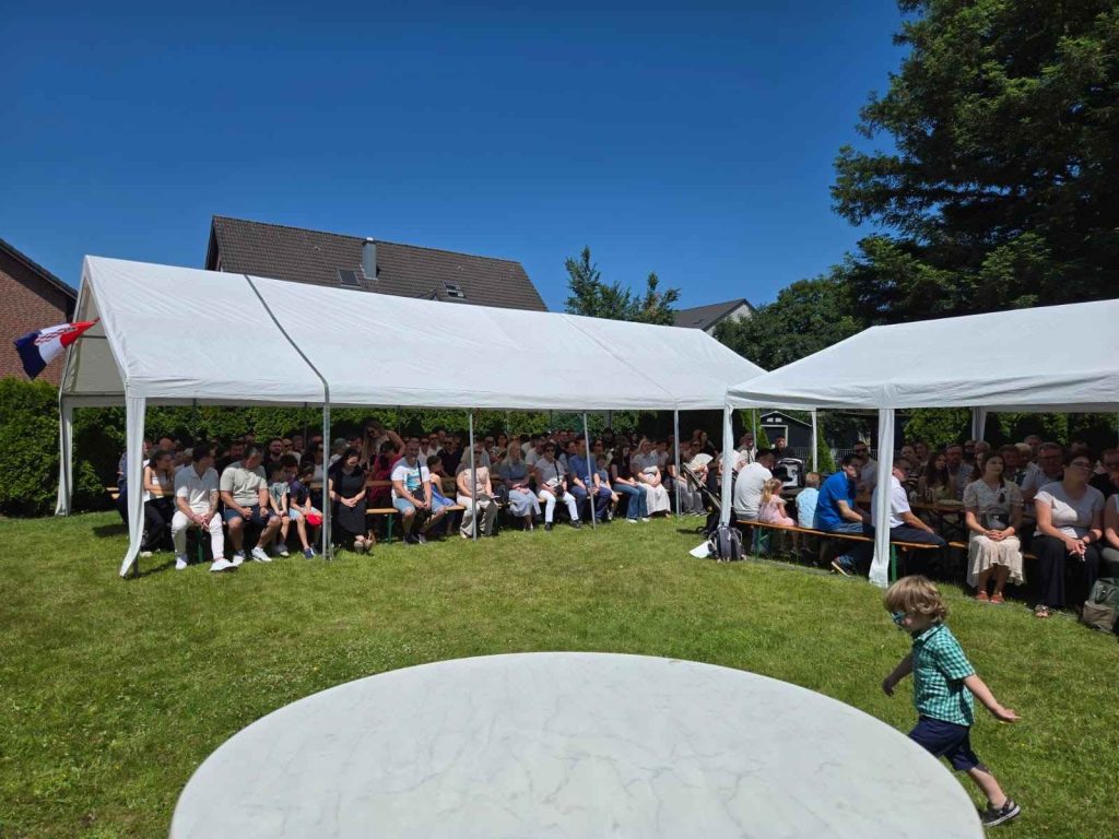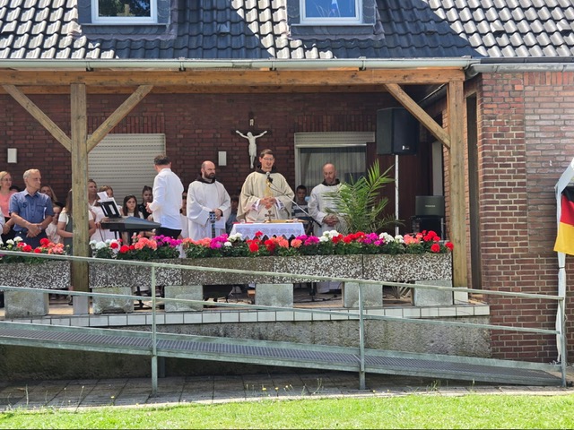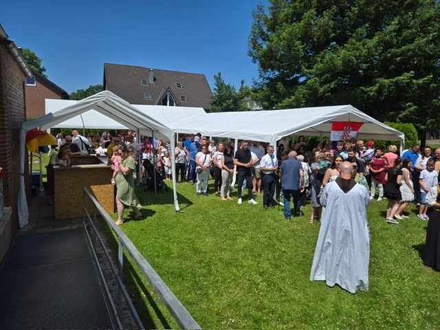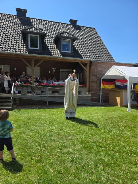 Poseban trenutak slavlja bio je svečani blagoslov s Presvetim Oltarskim Sakramentom na završetku mise, a nakon duhovne okrepe uslijedilo je zajedničko druženje uz balkansko-njemačke delicije, piće i glazbu. Uz veselo raspoloženje i srdačno zajedništvo, slavlje je dodatno obasjalo sunčano i toplo vrijeme – dar našega Spasitelja, koji nas je i ovoga puta obdario blizinom i radošću, koju jedino On može dati. Slavlje se nastavilo sve do predvečerja, u ozračju zahvalnosti, pjesme i bratskog susreta.
