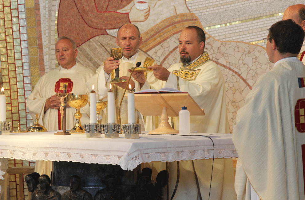 Nakon što mu je majka Alenka predala oltarni križ, fr. Drago je započeo euharistijsko slavlje u zajedništvu s brojnim sabranim vjernicima.
