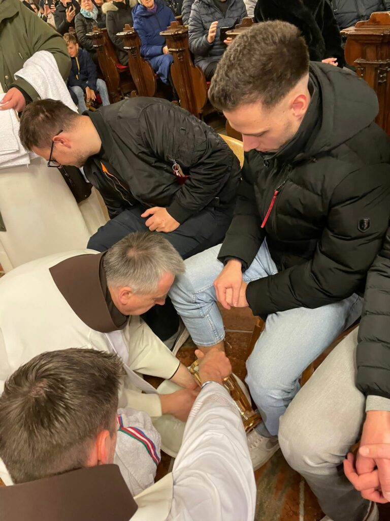 Nakon homilije uslijedio je obred pranja nogu, kada je predvoditelj slavlja dvanaestorici muškaraca oprao noge, kako bi pokazao čin Kristove ljubavi, koja se ponizuje, kako bi svi bili njome zahvaćeni i očišćeni.