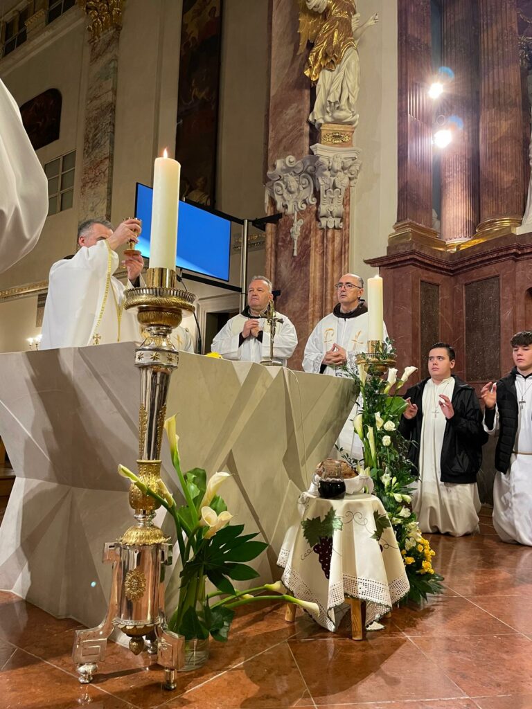 Svečano slavlje predvodio je fra Petar Cvekan, dušobrižnik za Hrvate u Linzu, uz kojeg su bili voditelj misije u Linzu i naddušobrižnik za Hrvate u Austriji fra Vjeko Lazić, voditelj misije u St. Pöltenu fra Ilija Mijatović, fra Ivan Ivanković iz Rima te naši domaći svećenici iz Beča: fra Josip Koren, fra Radovan Čorić, fra Marko Vuković i fra Darko Grmača.