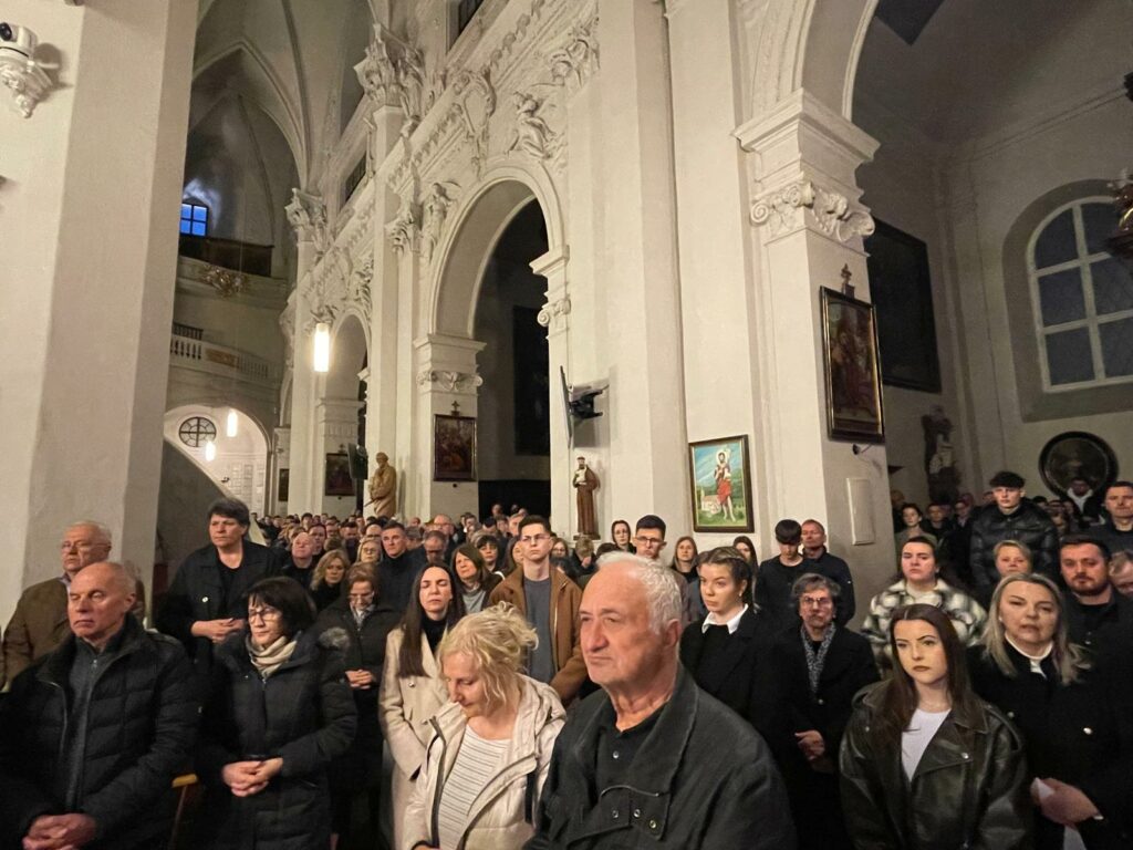 No veći dio vjernika ostao je na pobožnosti Getsemanske ure koju je predvodio fra Darko na pokrajnom oltaru. U tišini, ali i kroz kratke molitve i korizmene pjesme promatrali smo Krista koji se sprema za Muku te sebi posvijestili da je ta Muka djelo ljubavi svakome od nas.