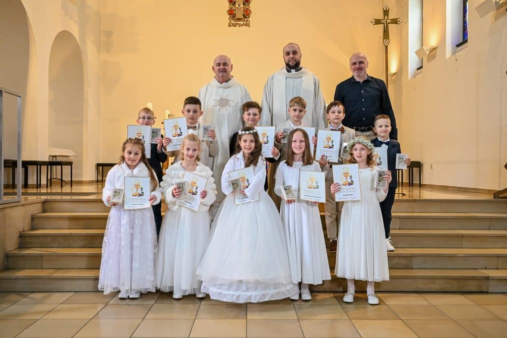 Prva sveta pričest održana je u subotu u crkvi sv. Mihaela. Euharistijsko slavlje predvodio je don Tihomir Šutalo, uz suslavlje don Stjepana Matijevića. Pričesti je pristupilo 37-ero djece koje je tijekom godine pripremala vjeroučiteljica Sanja Gluhak. Svečanosti je pridonio dječji zbor pod njezinim vodstvom, uz instrumentalnu pratnju Manuela Mišića na klavijaturi i Dominika Mišića na gitari.
