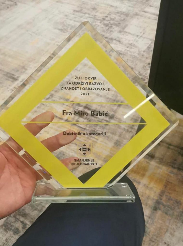 Fra Miro Babić, franjevac Bosne Srebrene i dugogodišnji misionar u Keniji, dobitnik je nagrade “Žuti okvir za održivi razvoj, znanost i obrazovanje”, koju dodjeljuje National Geographic magazin za Hrvatsku.