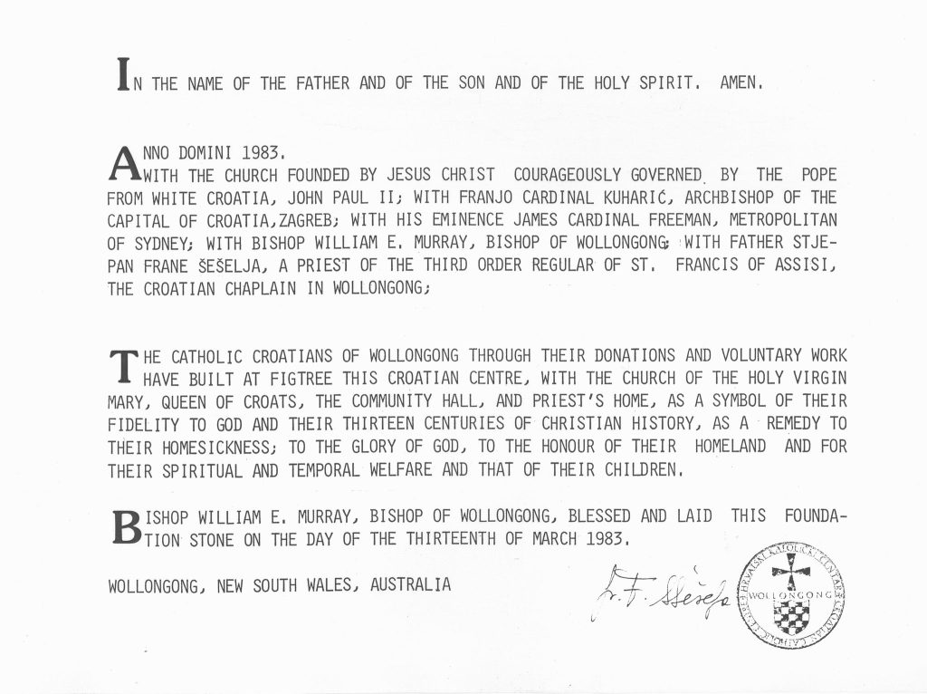 Hrvatski katolički centar i crkva “Marija kraljica Hrvata” pripremaju se za proslavu četiri desetljeća djelovanja među našom dijasporom u australskom Wollongongu. Kamen temeljac za centar blagoslovio je 13. ožujka 1983. godine tadašnji biskup William Murray.