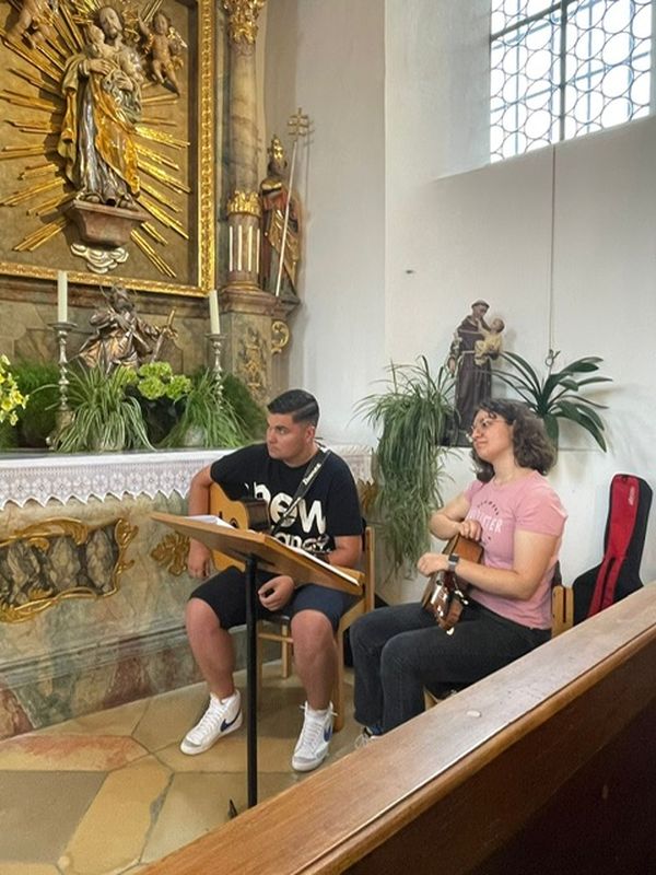 Na misu je došlo 65-ero hodočasnika pješaka, kojim su zatim krenuli pješice prema Altöttingu, kroz polja i šume. S pjesmom i molitvom, obasjani sunčevim zrakama, prevalili su 60 kilometara. Prenoćili su u Waldkraiburgu, a zatim su pet kilometara prije marijanskog svetišta slavili svetu misu u Wallfahrtskirche Heiligenstatt. Misu je predvodio fra Slaven Čeko.