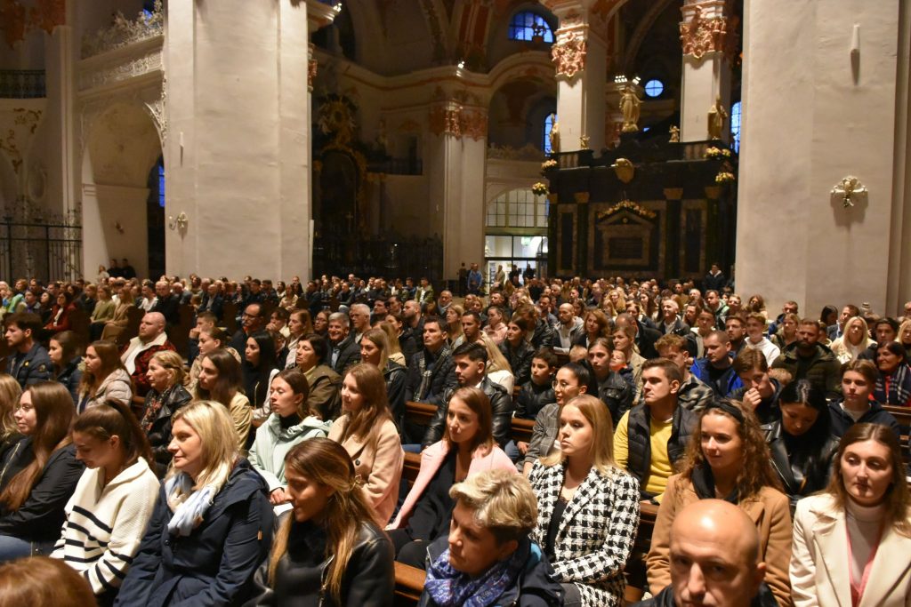 Vrhunac susreta bilo je svečano euharistijsko slavlje u bazilici Crne Gospe. Ugodnom molitvenom ozračju skladnim pjevanjem i muziciranjem uvelike su doprinijeli članovi međumisijskog zbora mladih. Pozdravne riječi dobrodošlice uputili su fra Antonio Šakota, koordinator hrvatskih katoličkih misija u Švicarskoj i opat Urban Federer, poglavar benediktinskog samostana.