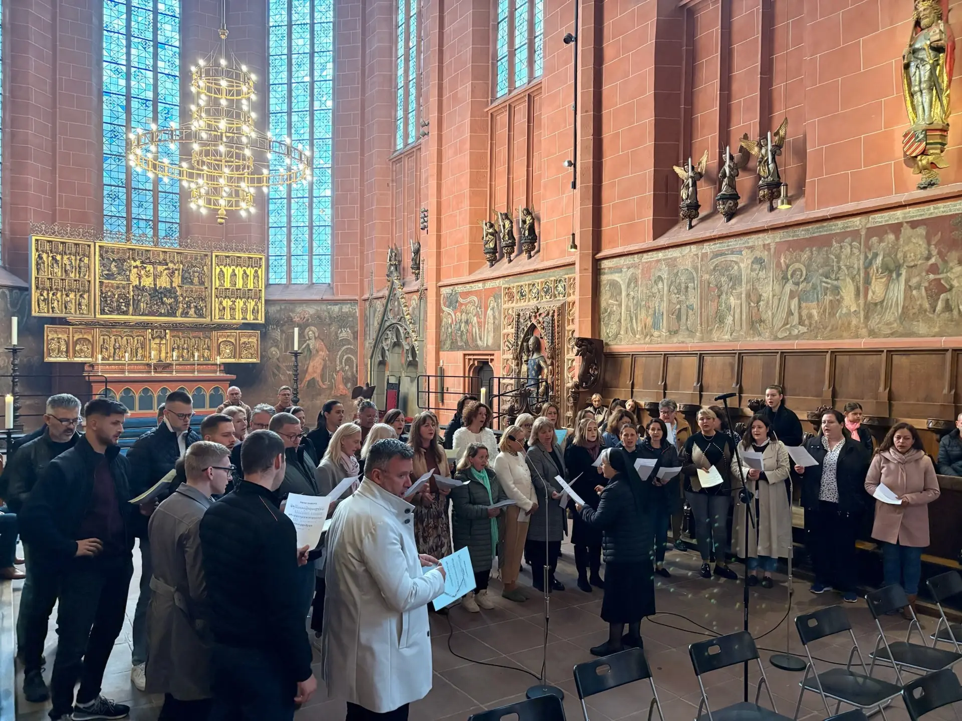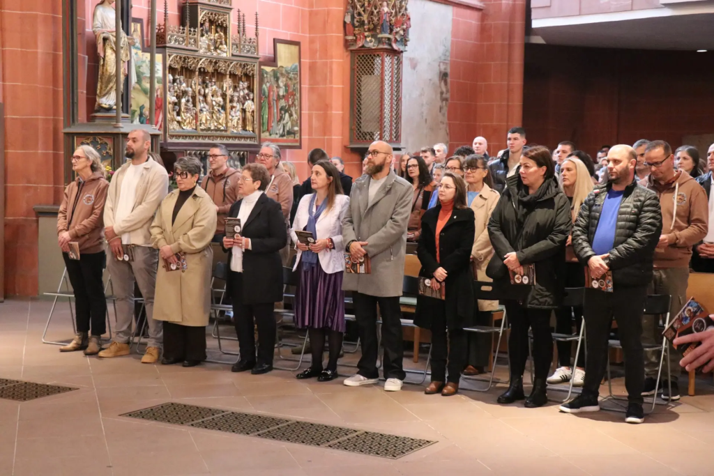 U prepunoj katedrali vladalo je ozračje radosti i zajedništva. Mladi iz Frame München, Wiesbaden, Mainz, Kelkheim (Taunus) i Darmstadt došli su podržati svoje vršnjake i zajedno zahvaliti Kristu. Zbor „Mato Lešćan“, pod ravnanjem s. Pavlimire Šimunović, svojim pjevanjem dodatno je obogatio liturgijsko slavlje.