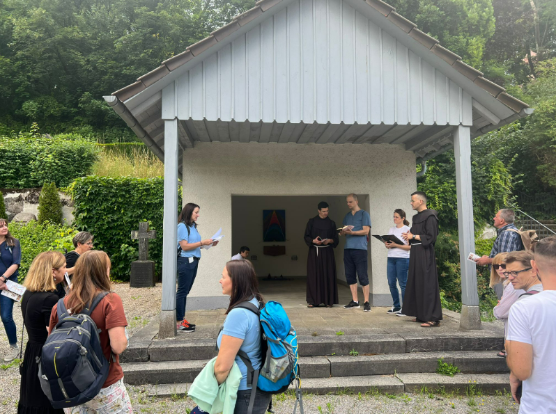Staza počinje kod franjevačkog samostana, a završava kod crkve sv. Elizabete u Bensheim-Schönbergu. Ispred samostana vjernike je dočekala voditeljica Ružica Bosankić. Zaustavljanje na svakoj postaji započeli bi pjesmom Stvorova, kratkim čitanjem o određenoj ploči i duhovnim poticajem fra Petra Komljenovića. Hod između postaja bio je ispunjen razgovorima, smijehom, slikanjem i razmatranjem veličanstvene prirode.