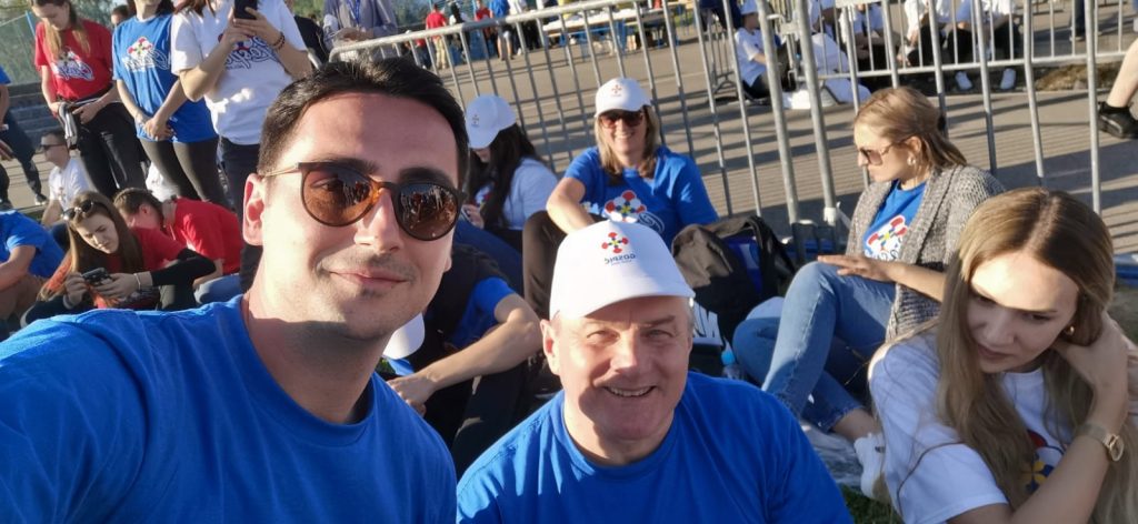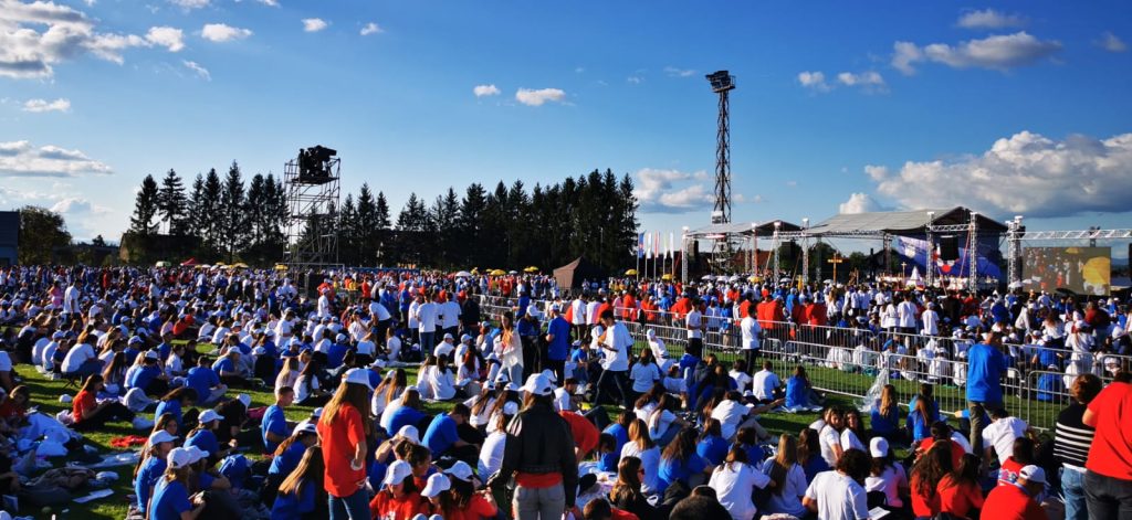 Veselih i razigranih srdaca mladi su se u procesiji nakon toga uputili prema nogometnom stadionu Balinovac gdje su prije svete mise imali priliku za sakrament pomirenja te zajedničku molitvu krunice.