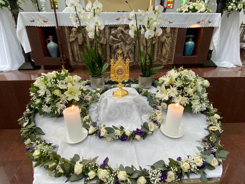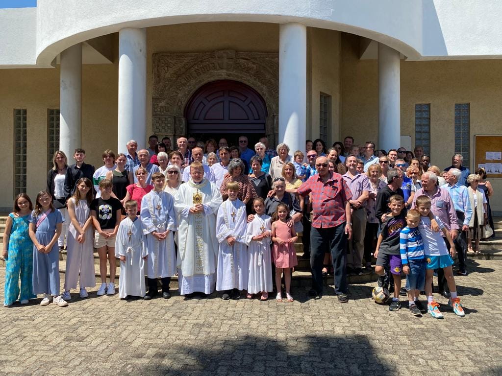 Nedjeljna sveta misa započela je procesijom u kojoj su bili prisutni i članovi župnog franjevačkog svjetovnog reda. Na samom uvodu mons. Paviša pozvao je vjernike da se ujedine s domovinskom crkvom u Hrvatskoj u radosti zahvale na 25. godišnjici proglašenja blaženim kardinala Alojzija Stepinca. Osvrnuo se također i na život svete Terezije od djeteta Isusa čiji je spomendan 1. listopada.