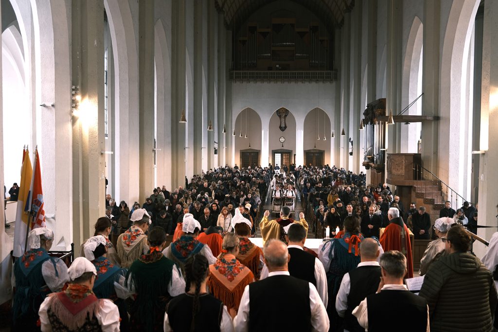 Misno slavlje u prepunoj crkvi sv. Andrije započelo je velikom procesijom u kojoj je sudjelovalo više od 50 članova Kulturno-umjetničkih društava Hrvata Savezne države Salzburg. Osim domaćeg KUD-a „Vilim Cecelja“, svojom prisutnošću misno su slavlje uveličali članovi Kulturno-umjetničkih društava Hrvata iz dijelova Savezne države Salzburg – Pongau i Pinzgau.