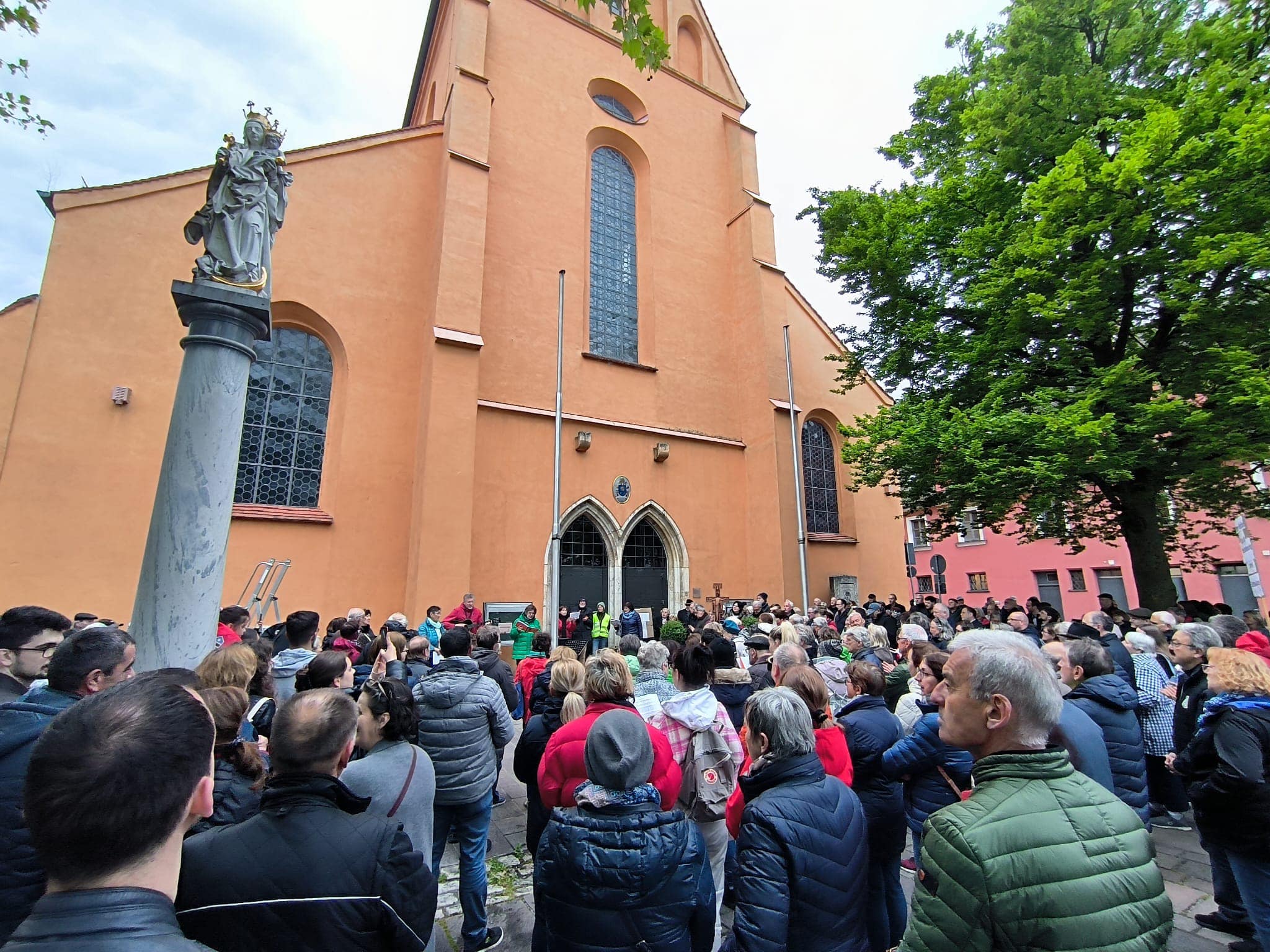 Stotinjak mirnih prosvjednika okupilo se u petak na trgu u Ingolstadtu ispred crkve Franziskanerkirche koju biskupija Eichstätt planira sekularizirati.