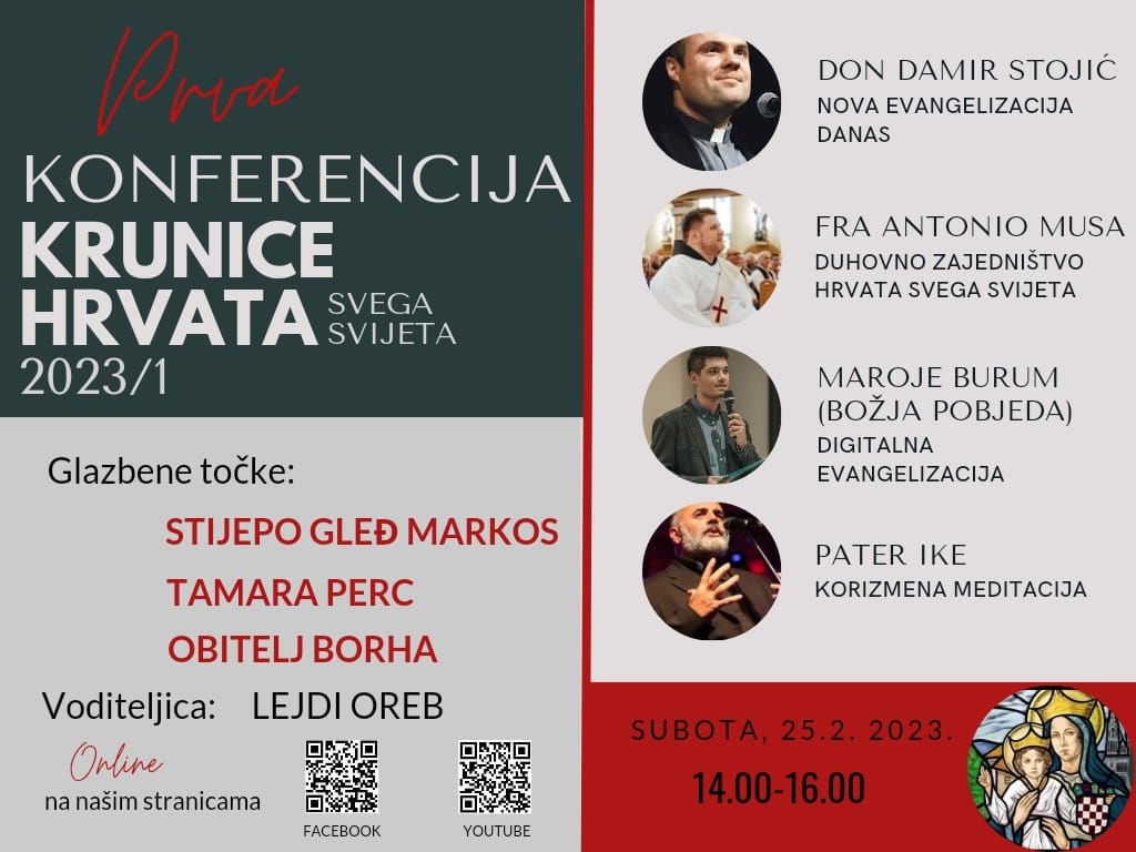O novoj i digitalnoj evangelizaciji govorit će don Damir Stojić i Maroje Burum. Za glazbene točke programa pobrinut će se Stijepo Gleđ Markos, Tamara Perc i obitelj Borha. Voditeljica konferencije bit će Lejdi Oreb.