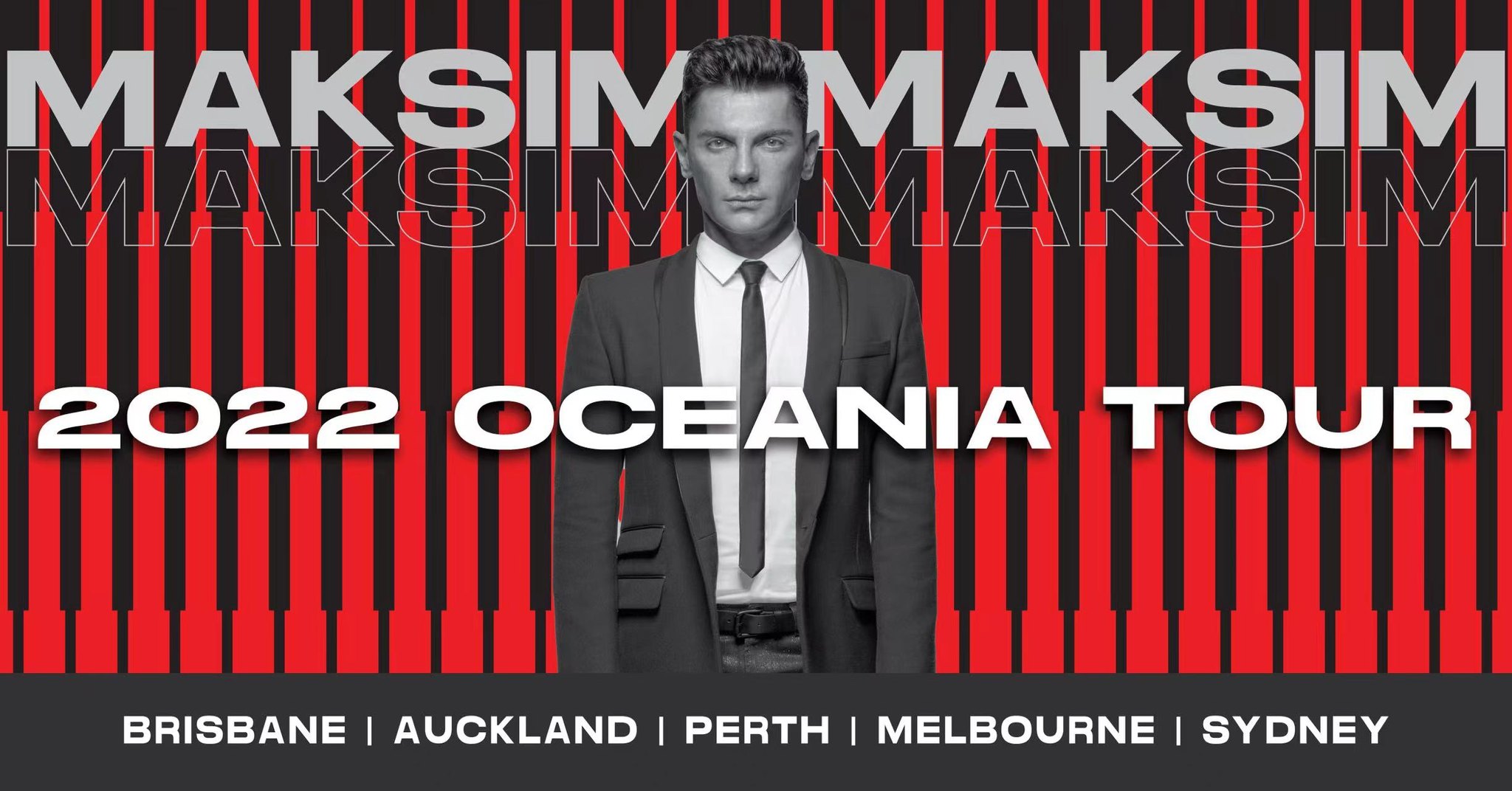 Ovog rujna u turneju “2022 Maksim Oceania Tour” obići će pet gradova: Melbourne, Sydney, Brisbane, Perth i Auckland. Uz blistav audio-vizualni scenski efekt, Maksim će vam donijeti najbolju glazbu i scenske efekte!