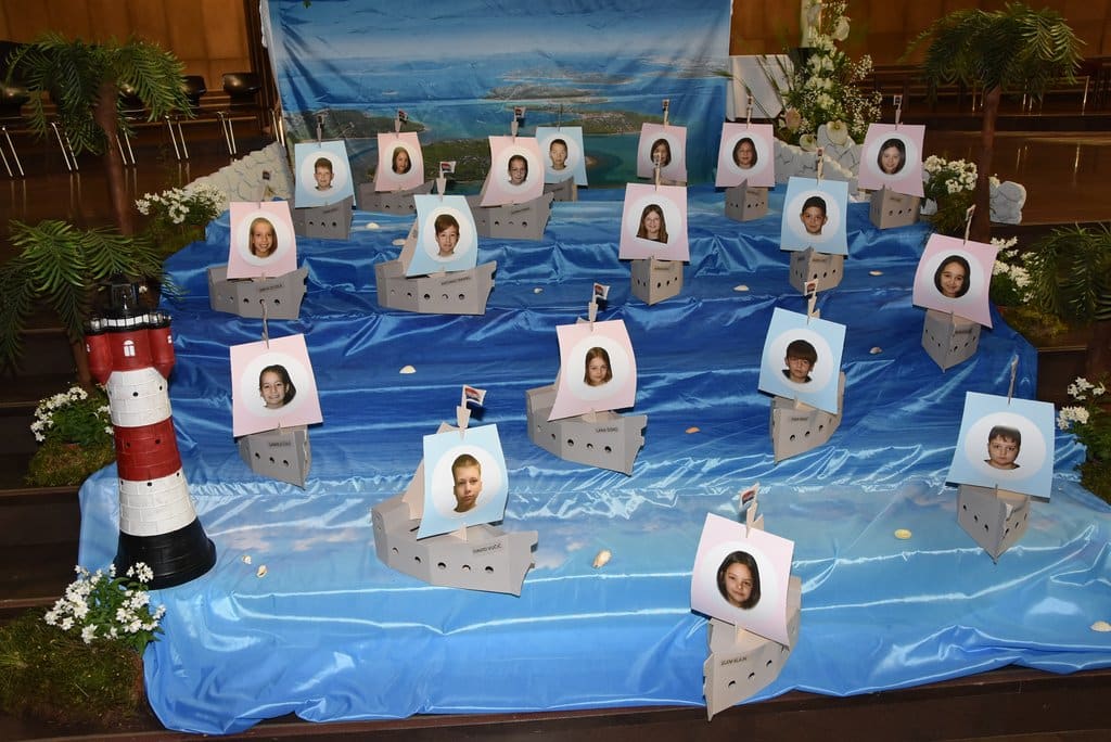 Oltar i prostor ispred bili su oslikani otocima i morem, a 18 brodova simboliziralo je prvopričesnike noseći na sebi njihovu sliku, ime i prezime. Svjetionik s kojeg je blicalo svijetlo simbolizirao je Isusa.
