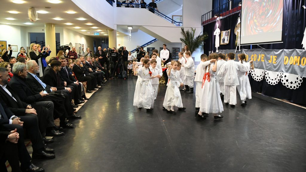 Nakon prigodnog literarnog i plesnog programa učenika HOŠIG-a, predsjednik Milanović obišao je školu u pratnji ravnateljice škole Anne Gojtán, javili su iz Ureda predsjednika.