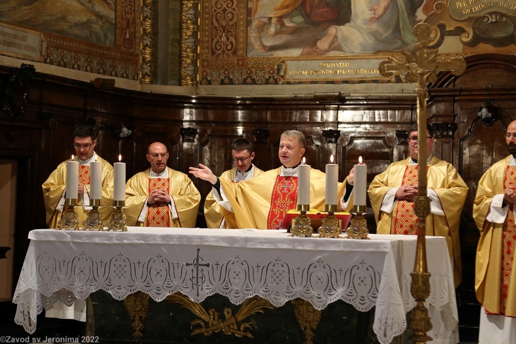 Delegaciju je dočekao i pozdravio rektor Zavoda i crkve sv. Jeronima Marko Đurin koji je ukratko protumačio povijest crkve i Zavoda sv. Jeronima.