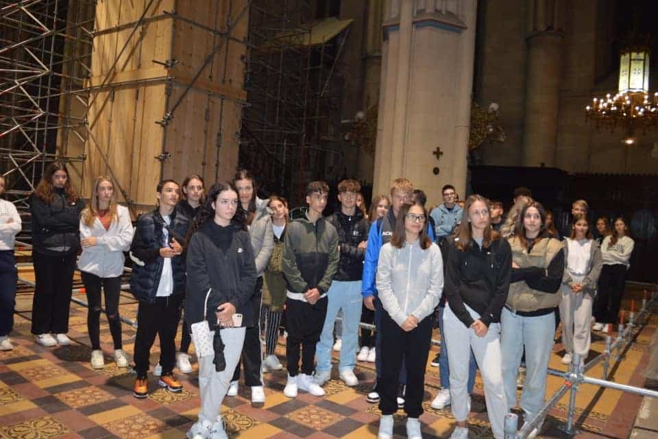 Pedesetak mladih pred zagrebačkom prvostolnicom dočekao je rektor katedrale mons. Zlatko Koren koji im je omogućio posjet u potresu ranjenoj katedrali.