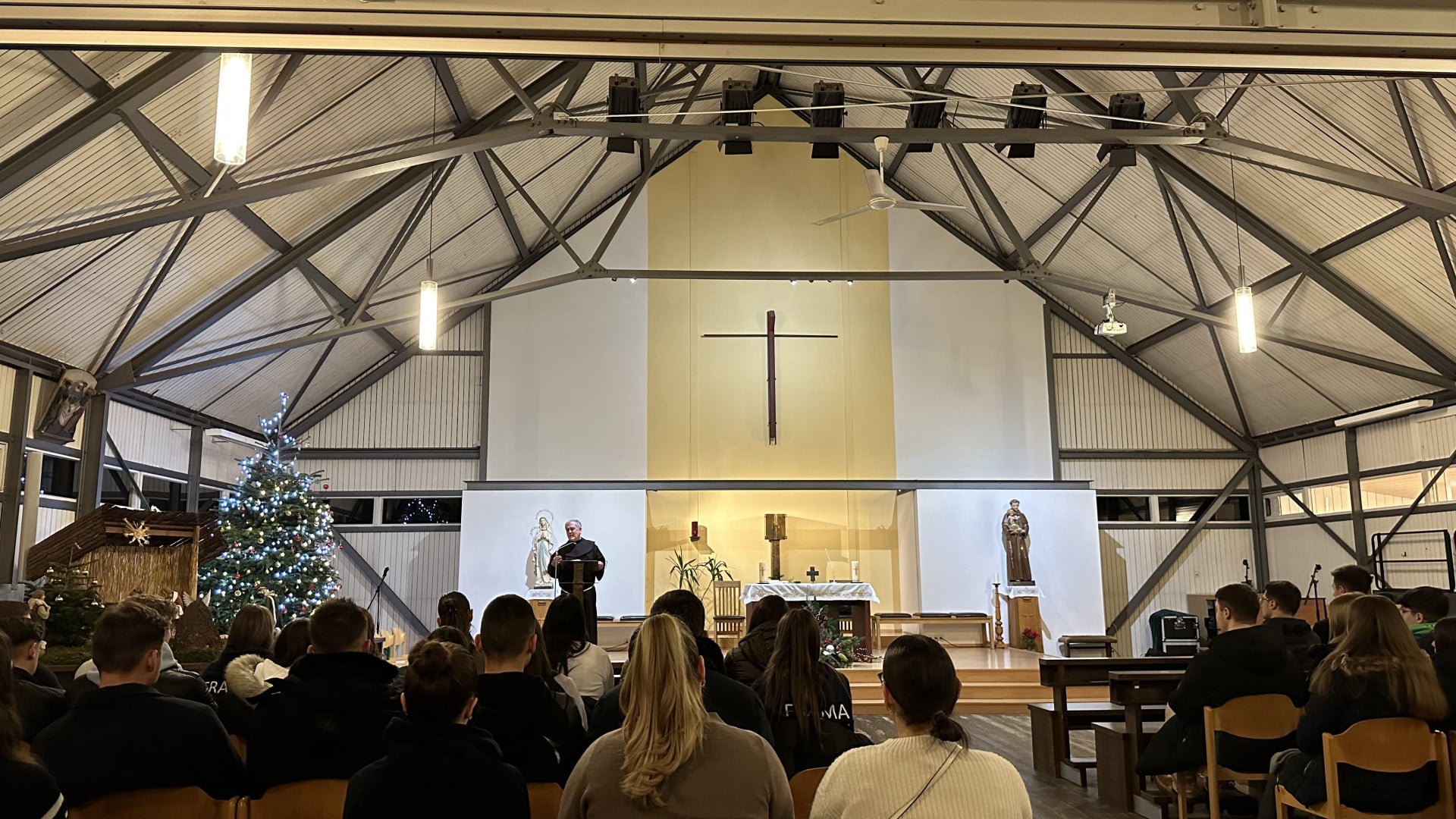 U subotu 5. listopada 2024. mladi su slavili svetu misu u Krašiću, u crkvi Presvetog Trojstva, gdje ih je srdačno pozdravio župnik vlč. Ivan Vučak. Sa svojim vjeroučiteljem fra Slavenom izmolili su molitvu u čast blaženom Alojziju Stepincu, tražeći njegov zagovor i primjer u životnim borbama na putu vječnog spasenja.