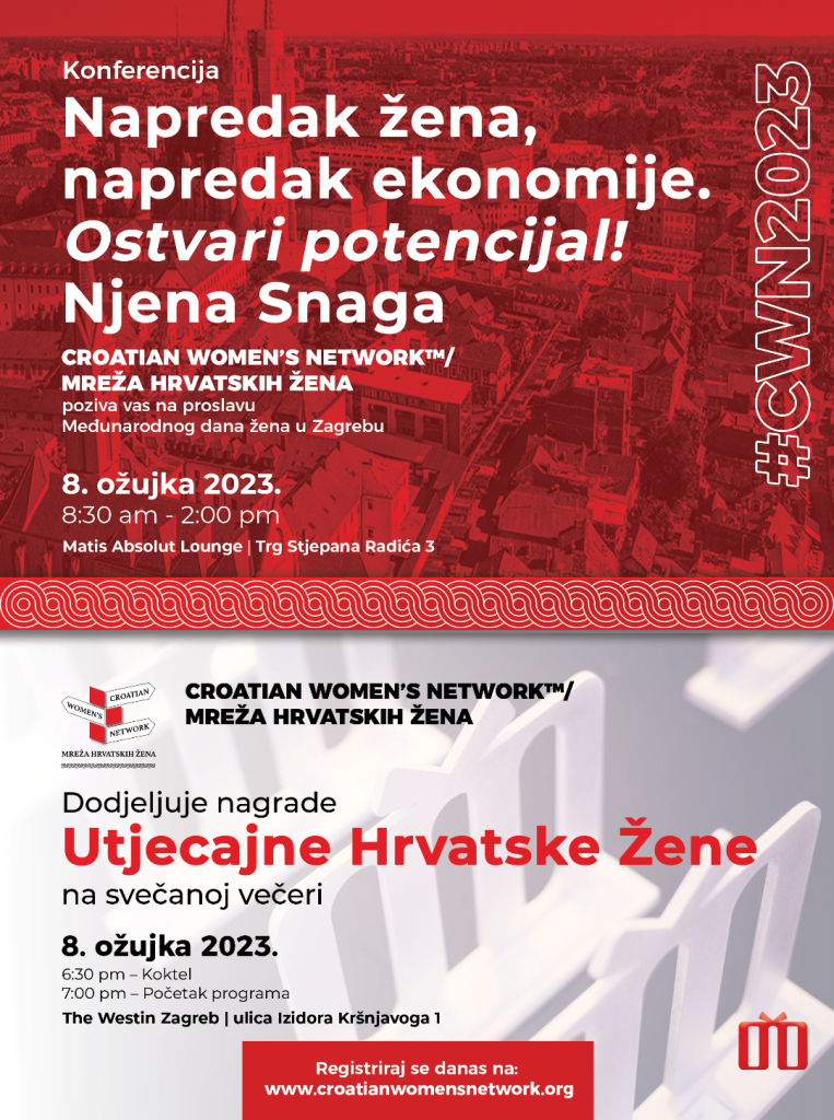 Na konferenciji koja će biti održana 8. ožujka u Zagrebu, u organizaciji Mreže hrvatskih žena, govorit će mnogobrojni hrvatski i međunarodni ugledni predavači, gosti i visoki uzvanici, a otvorit će je Gordan Grlić Radman, ministar vanjskih i europskih poslova Republike Hrvatske.