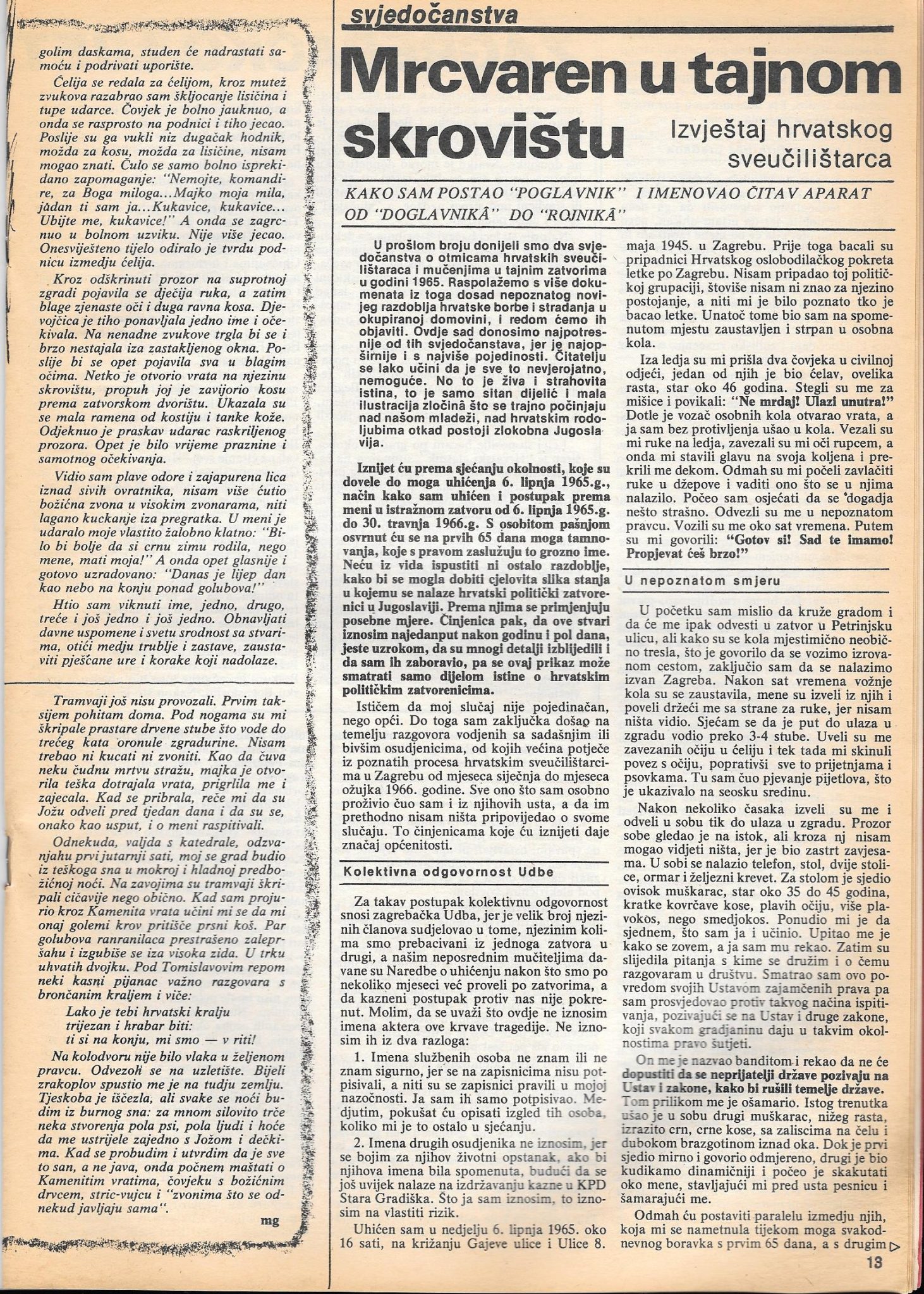 Nakon uhićenja krajem 1971. godine te zatvorske kazne, a onda i brutalnog premlaćivanja u središtu Dubrovnika, koncem 1974. godine treći je, i kako će se pokazati, posljednji put napustio domovinu. U novom egzilu objavio je veći broj tekstova, poput spomenutoga, u kojima je, uglavnom iz osobnog iskustva, ukazivao da je komunistička Jugoslavija, koja se u svijetu reklamirala kao napredna država u kojoj postoji istinski, humani socijalizam, zapravo rigidna diktatura koja se uz oportunizam brojnog birokratskog sloja koji je služio vladajućoj komunističkoj vrhuški, održava na širokom i brutalnom korištenju sile.