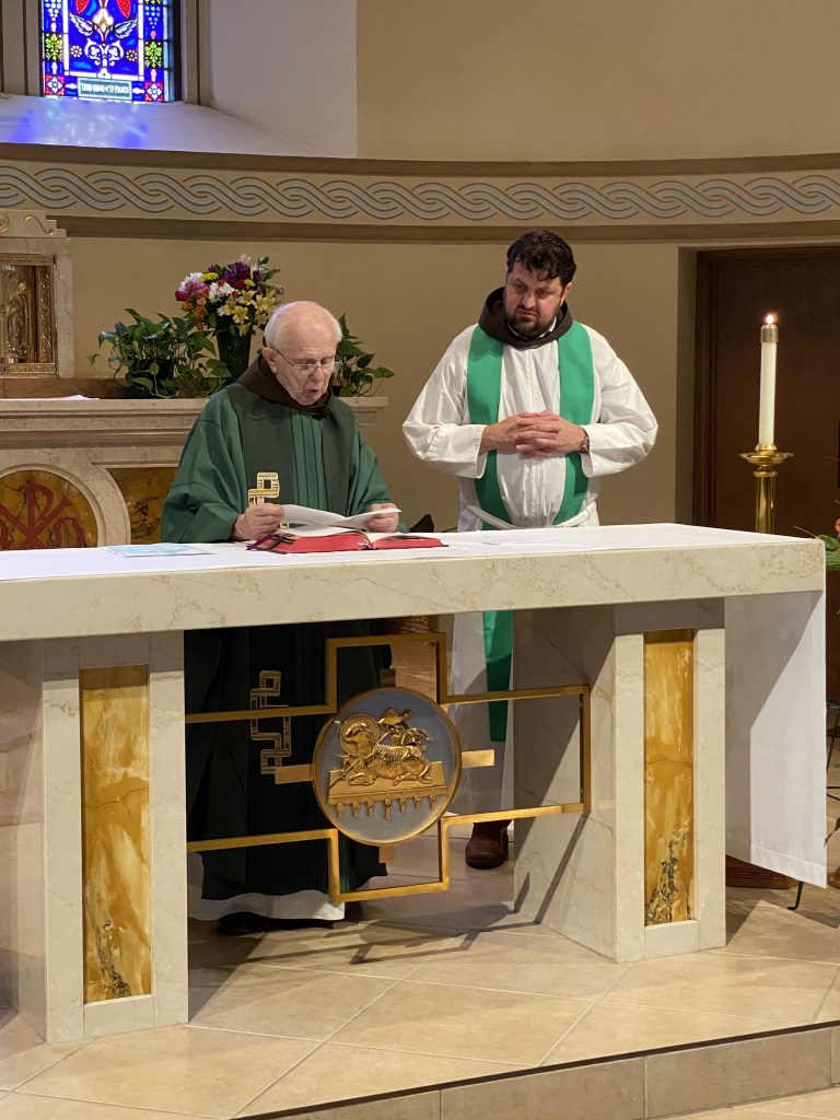 Svetu misu predvodio je dosadašnji župnik fra Lawrence Frankovich koji je ovdje služio tijekom proteklih 28 godina. U koncelebraciji su bili i fra Nenad Galić, bivši župnik i gvardijan iz Chicaga, fra Ivica Majstorović, župnik iz župe sv. Jeronima u Chicagu, izaslanik kustodijske uprave fra Nikola Pašalić iz New Yorka te drugi lokalni svećenici.