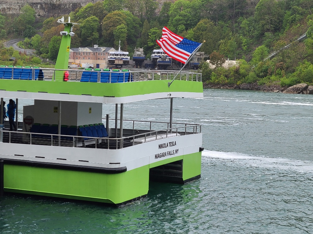 Upravo se ove godine obilježava 125. obljetnica od puštanja u pogon prve svjetske hidroelektrane na rijeci Niagara koja je dovela struju u grad Buffalo i druga udaljena mjesta u saveznoj državi New York. Najviše zaslugom Nikole Tesle upravo na prostoru Hrvatske sagrađena je i prva europska, a druga najstarija u svijetu hidroelektrana “Krka” – Šibenik (kasnije nazvana Jaruga I), koja je puštena u pogon samo dva dana nakon prve hidroelektrane na slapovima Niagare (28. kolovoza 1895.). Domaćini su nam s ponosom predstavili novi električni brod koji nosi ime poznatog izumitelja i fizičara Nikole Tesle, a koji u sklopu kultne turneje Maid of the Mist plovi vodama ispod Niagarinih slapova i prvo je putničko plovilo tog tipa u SAD-u.