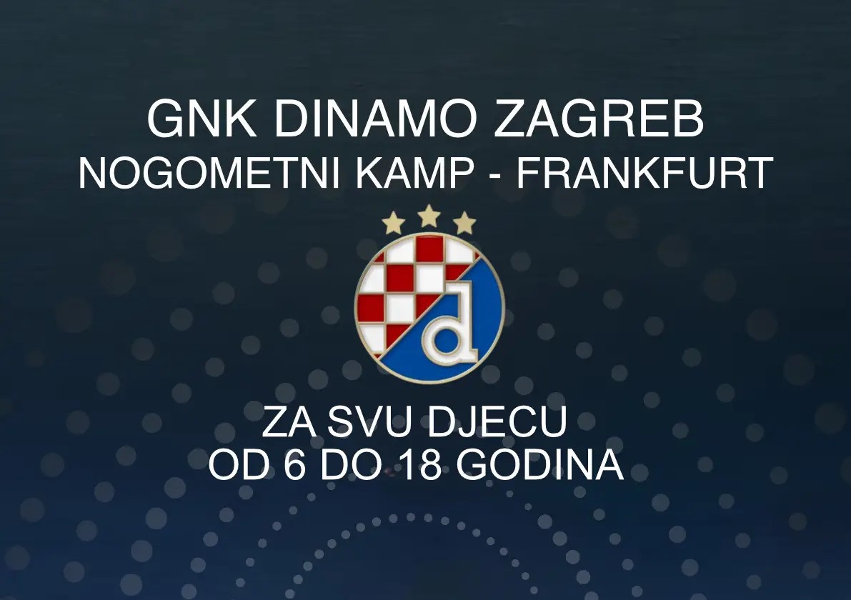 Nogometni klub Dinamo Zagreb organizira nogometni kamp u Frankfurtu te povodom toga poziva svu zainteresiranu djecu i mlade od 6 do 18 godina da se prijave na ovaj hvalevrijedan događaj.