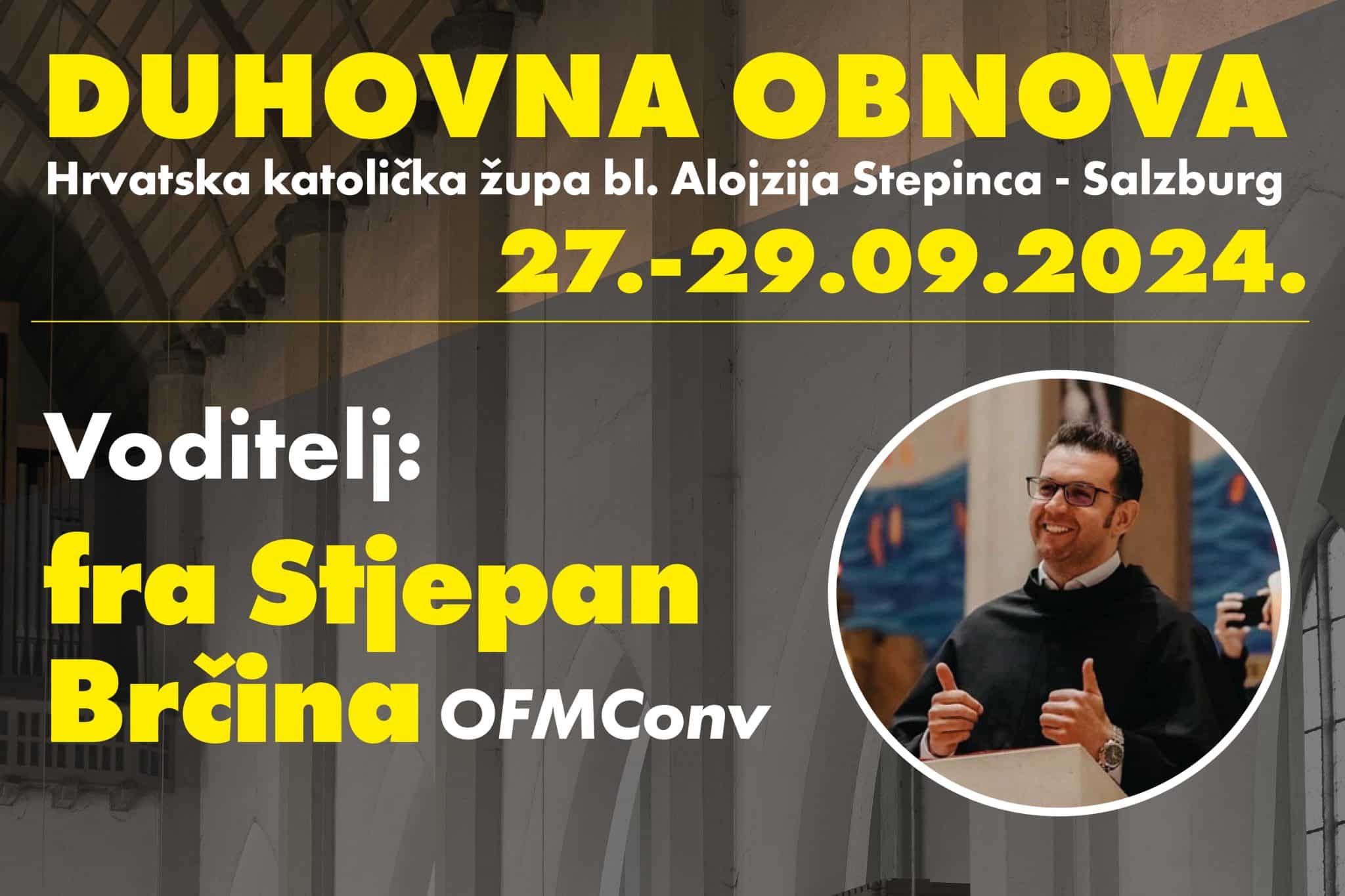 Od 27. do 29. rujna u Hrvatskoj katoličkoj župi bl. Alojzija Stepinca u Salzburgu bit će održana duhovna obnova koju će predvoviti fra Stjepan Brčina, svećenik franjevac.
