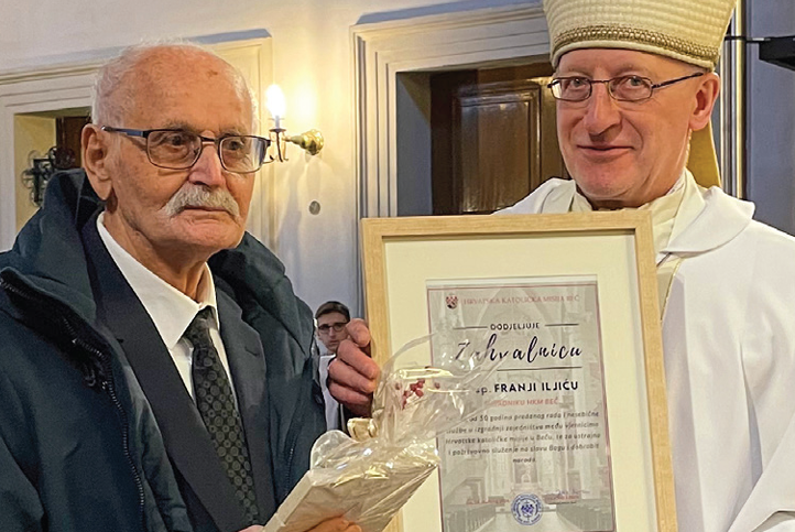 Pomoćni biskup Bečke nadbiskupije dr. Franz Scharl u crkvi Am Hof uručio je zahvalnicu 86-godišnjem Franji Iljiću u ime Hrvatske katoličke misije Beč, kao znak zahvalnosti za preko 50 godina aktivnog djelovanja.