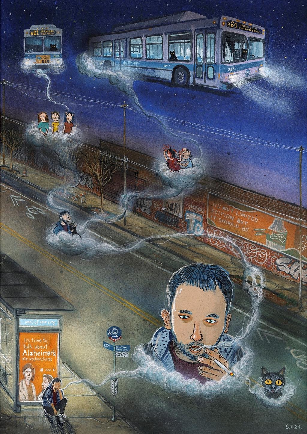 Za postav izložbe Branko Franceschi, ravnatelj Nacionalnog muzeja moderne umjetnosti i autor koncepcije, odabrao je 18 djela. Riječ je o radovima na papiru, uljima na platnu, uljima na drvu i slici na staklu, na kojima Stipan Tadić poput vlastitog dnevnika bilježi transformaciju životnih navika Njujorčana za vrijeme pandemije COVID-19, kao i drugačiju atmosferu kojom je taj velegrad odisao.