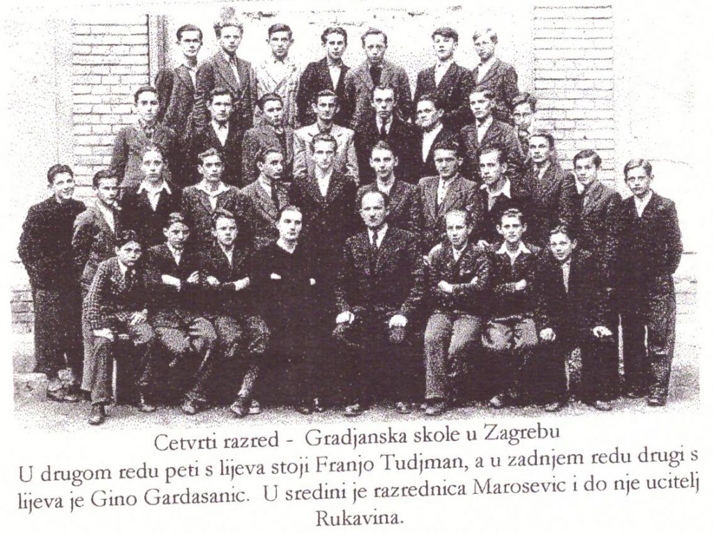 Ima i jedna zanimljiva slučajnost povezana s njegovim boravkom u Zagrebu. Naime, s njim u istim đačkim klupama sjedio je i budući predsjednik Republike Hrvatske, Franjo Tuđman. Gino je sačuvao i fotografiju četvrtoga razreda na kojoj je Tuđmana lako prepoznati. Pripovijedao je Gino kako se sjeća školskih kolega, a za Tuđmana kaže da je bio odličan đak; „dok je meni uzelo dane kako bih naučio Preradovićeva ‘Putnika’, Franjo je to deklamirao u roku od nekoliko minuta“.