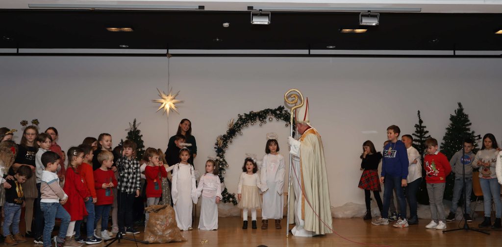 Sudjelovali su učenici svih uzrasta od predškole do osmoga razreda. Skupina učenika od 4. do 7. razreda sa svojom vjeroučiteljicom Sanjom Gluhak izvela je prigodan igrokaz “Što bismo mogli pokloniti Isusu?” Dok su svi čekali dolazak svetog Nikole, dječji zbor „Snagom ljubavi Tvoje“ iz Gaggenaua pod vodstvom voditelja otpjevao je pjesme “Hoćemo li zapjevati?”, “Zvona zvone, Božić je”, “Sretan Božić svakome” i razveselio sve prisutne.