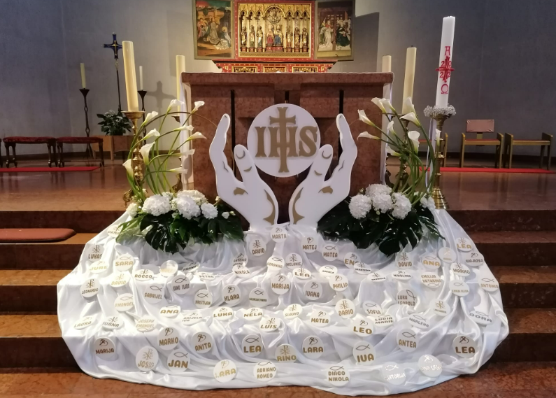 S. Filipa Smoljo marljivo je tijekom vjeronaučne godine pripremala 76 djevojčica i dječaka kako bi prvi put mogli pristupiti k stolu Gospodnjem i biti sudionici Njegove gozbe. Radost i ljepotu ovog trenutka uveličao je lijepo ukrašen oltar ispred kojeg su se prostirale bijele hostije s upisanim imenima svakog prvopričesnika.