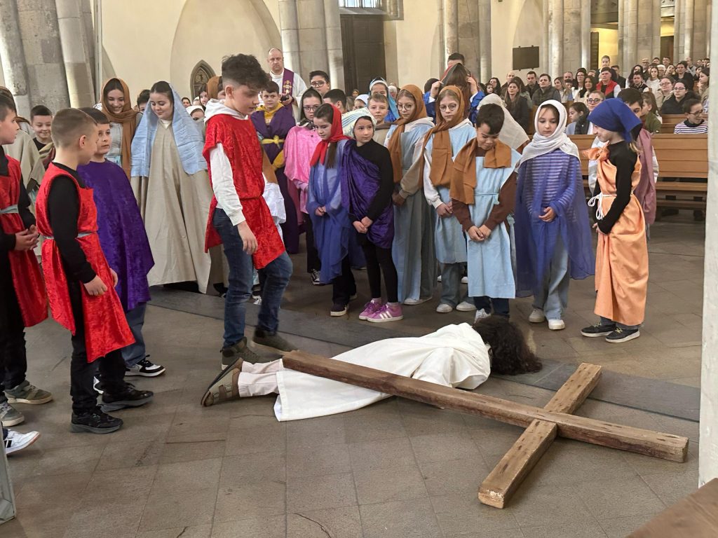 Tekst Puta križa čitala je Laura Rajić, predsjednica Frame. Djecu su, za taj posebni korizmeni susret, pripremale vjeroučiteljica s. Renata Rapi i s. Bora Marki koje su osmislile i izradile prigodne kostime te scenografiju.