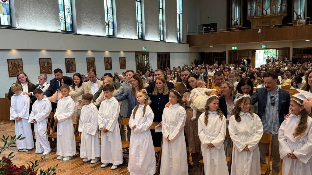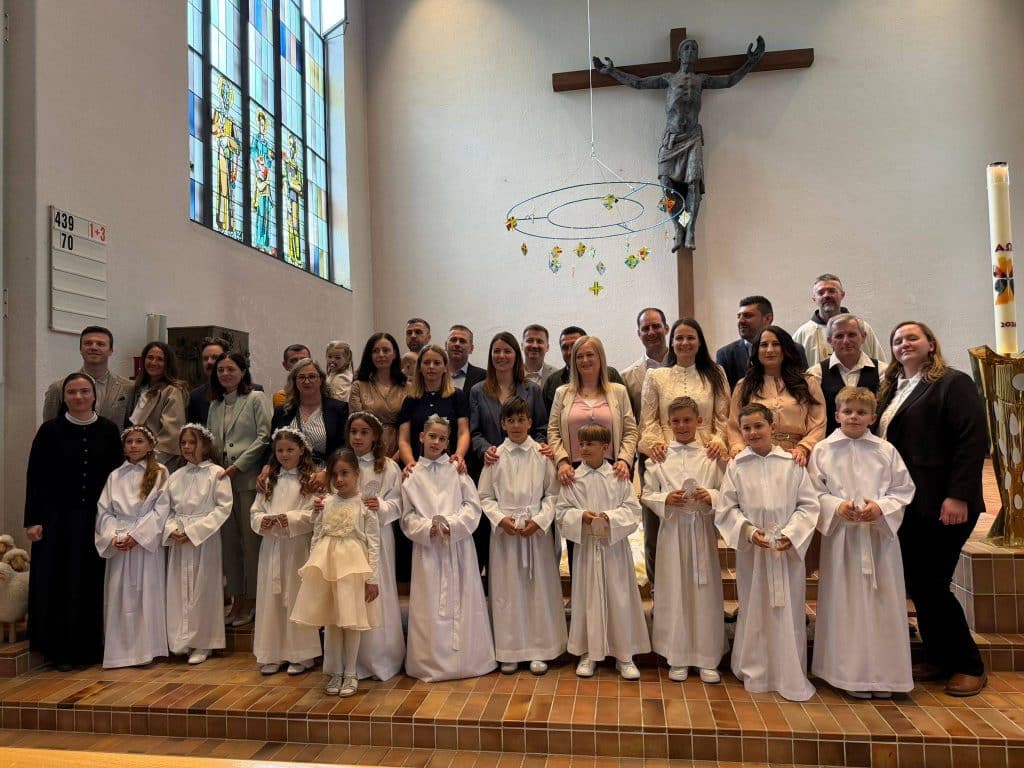 U Hrvatskoj katoličkoj misiji Zug desetero mališana primilo je prvu svetu pričest. Hrvati u ovom švicarskom gradu u svečanoj su procesiji ušli u crkvu Gut Hirt, noseći anđele i pojedinačno izgovorili: “Isuse, želim biti tvoj anđeo mira u ovom svijetu”.