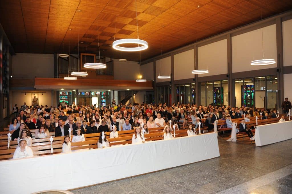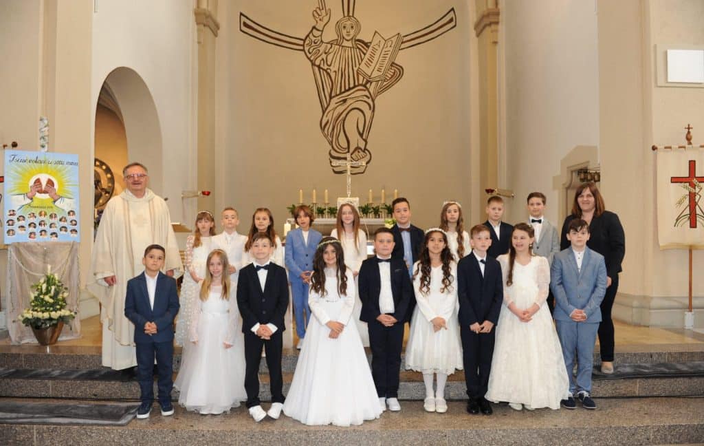 Hrvatska katolička župa bl. Alojzija Stepinca Salzburgu u subotu je proslavilu prvu svetu pričest na kojoj je 15-ero mališana prvi put pristupilo Presvetoj euharistiji. Svetu misu predvodio je novoimenovani požeški biskup mons. Ivo Martinović, a u koncelebraciji su bili župnik p. Zlatko Špehar, p. Ivan Cvetković, fra Dario Mican TOR i p. Aleksa Palavrić. “Zahvaljujemo […]