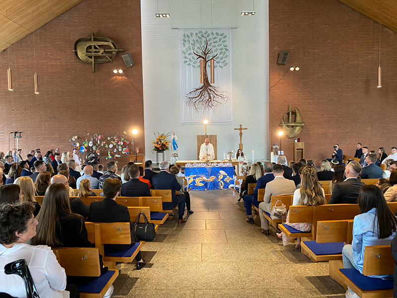 Nakon dvije godine ograničenja zbog koronavirusa, u subotu je Hrvatskoj katoličkoj misiji Bern održana prva sveta pričest bez mjera. Sveti sakrament od misionara fra Gojka Zovka primilo je 19-ero mladih.