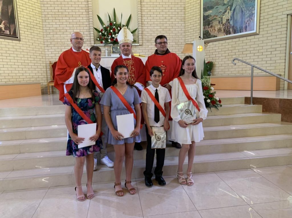 Biskup Svalina u nedjelju je predvodio misno slavlje u HKC-u Marije, Kraljice Hrvata u Wollongongu, gdje je petero mladih primilo sakrament svete potvrde. Suslavili su ravnatelj Markić i voditelj centra fra Ivo Tadić, član Franjevačke provincije Bosne Srebrene, koji je pozdravljajući biskupa istaknuo kako se uz ovo nedjeljno misno slavlje lokalni vjernici rado spominju i 39. obljetnice izgradnje i posvete crkve i blagoslova centra, a uz 12. obljetnicu smrti pozvao je i na molitvu za nekadašnjeg voditelja centra fra Andreja Matoca. Zajedništvo je u Wollongongu nastavljeno zajedničkim ručkom na kojem je sudjelovalo oko 200 vjernika.