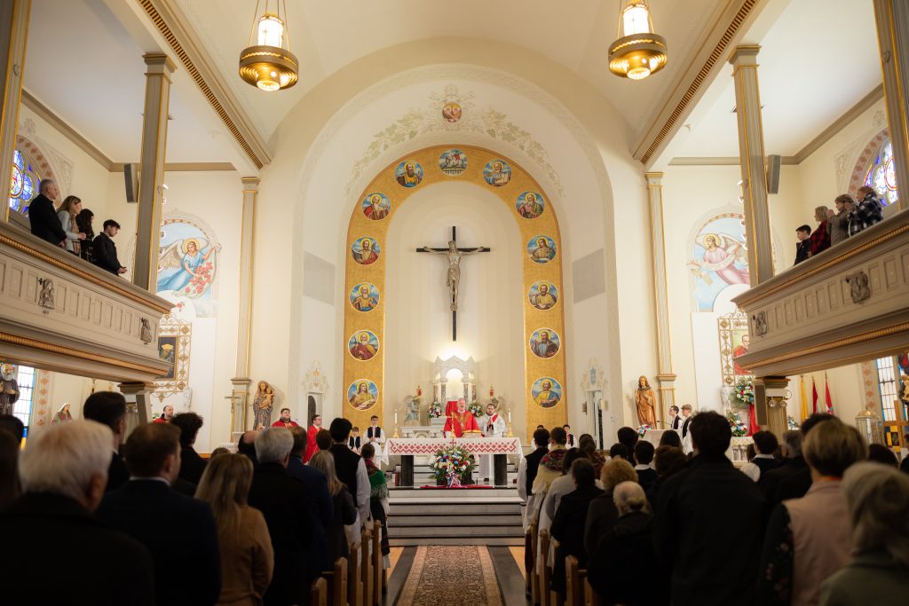 Prije početka svete mise o. biskupa i sve prisutne pozdravila je Ivanka Paraga, ravnateljica Hrvatske škole kardinal Stepinac. Pod misnim slavljem čitala su djeca iz hrvatske škole. Biskup Petanjak nadahnuto je propovijedao o liku kardinala Stepinca.