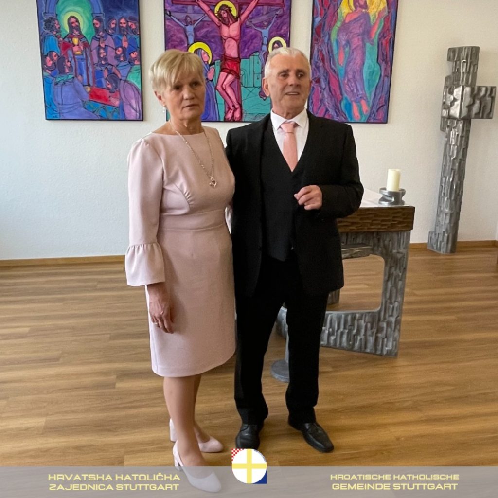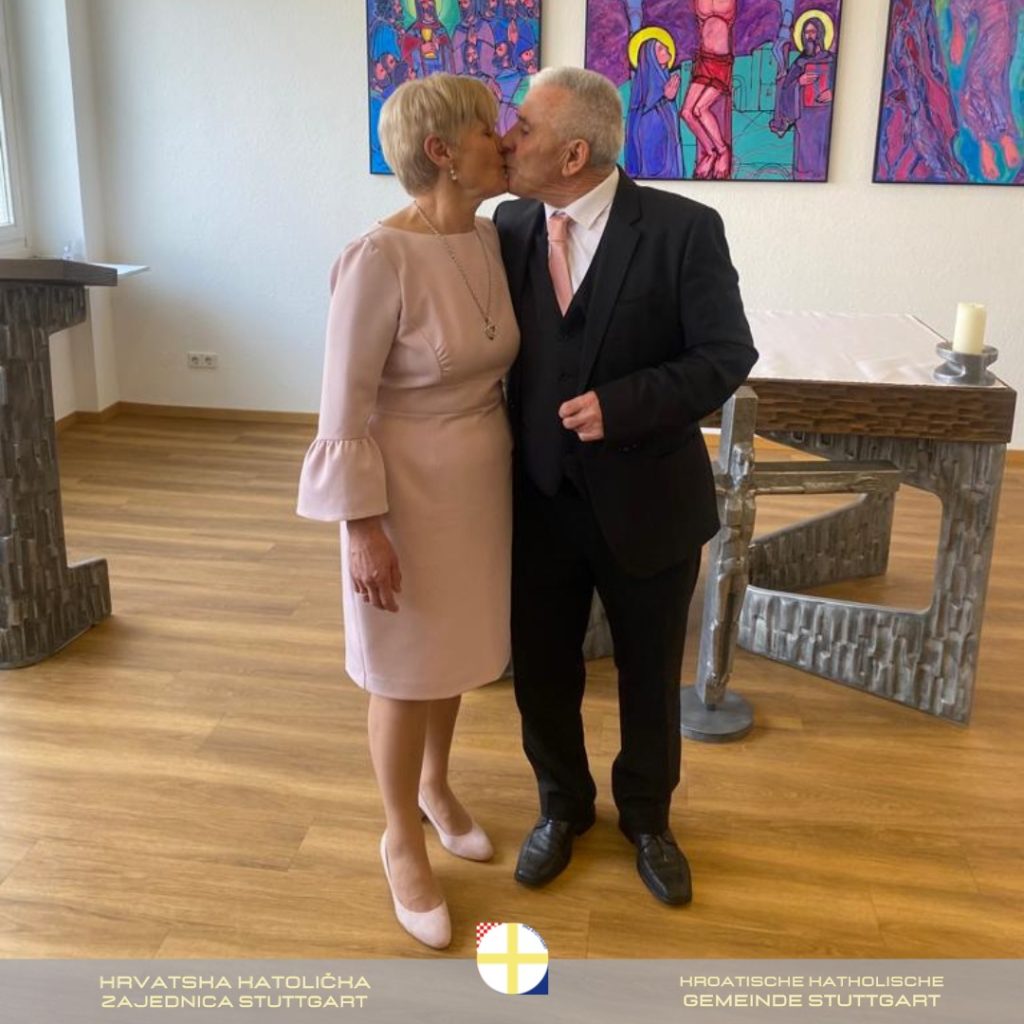“Uime cijele župne zajednice našim svečarima Anti i Kati čestitamo zlatnu obljetnicu braka i želimo im obilje mira, zdravlja i radosti. Neka ih Gospodin poživi još dugo godina i blagoslovi njih i njihovu obiteljsku lozu svakim blagoslovom”, napisali su iz HKZ-a Stuttgart.