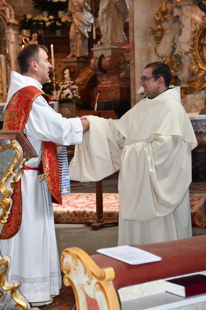 Na samom početku svete mise dobrodošlicu je poželio prior o. Henrik Damjanović iz sestrinske opatije Wettingen-Mehrerau kod Bregenza u Austriji. Biskupa je uime krizmanika pozdravio Josip Hrvat, a prigodan dar uručila je Katarina Račan.