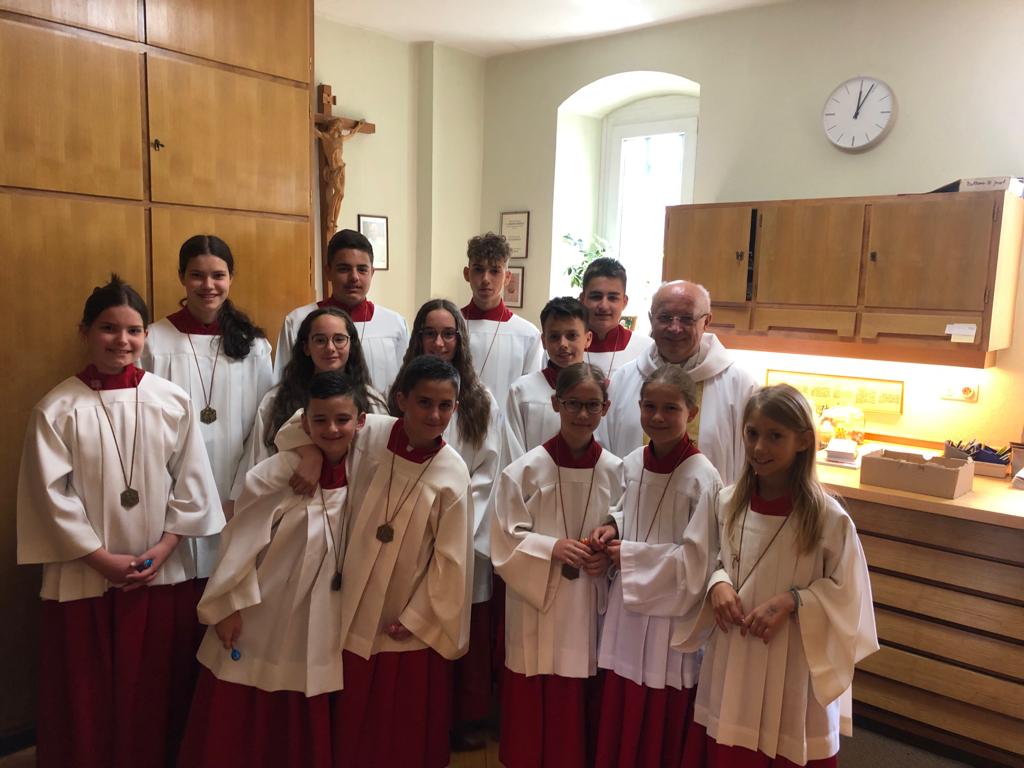 U četvrtak 26. svibnja, na svetkovinu Uzašašća Gospodinova, slavljena je prva pričest u crkvi St. Antonius u Pforzheimu. Misnim slavljem predsjedao je don Ivo Nedić u suslavlju s don Stjepanom Matijevićem. Don Ivo je ujedno bio djelitelj sakramenta prve pričesti djeci koju je pripremao kroz godinu dana. Pričešćeno je 18-ero djece. Glazbenim dijelom programa ravnao je i na klaviru pratio Darko Rubčić, a pjevali su mladi iz Pforzheima. Zanimljivost je da je za ovu prigodu šestero mladih iz zajednice Pforzheim bilo obučeno u tradicionalne hrvatske nošnje.