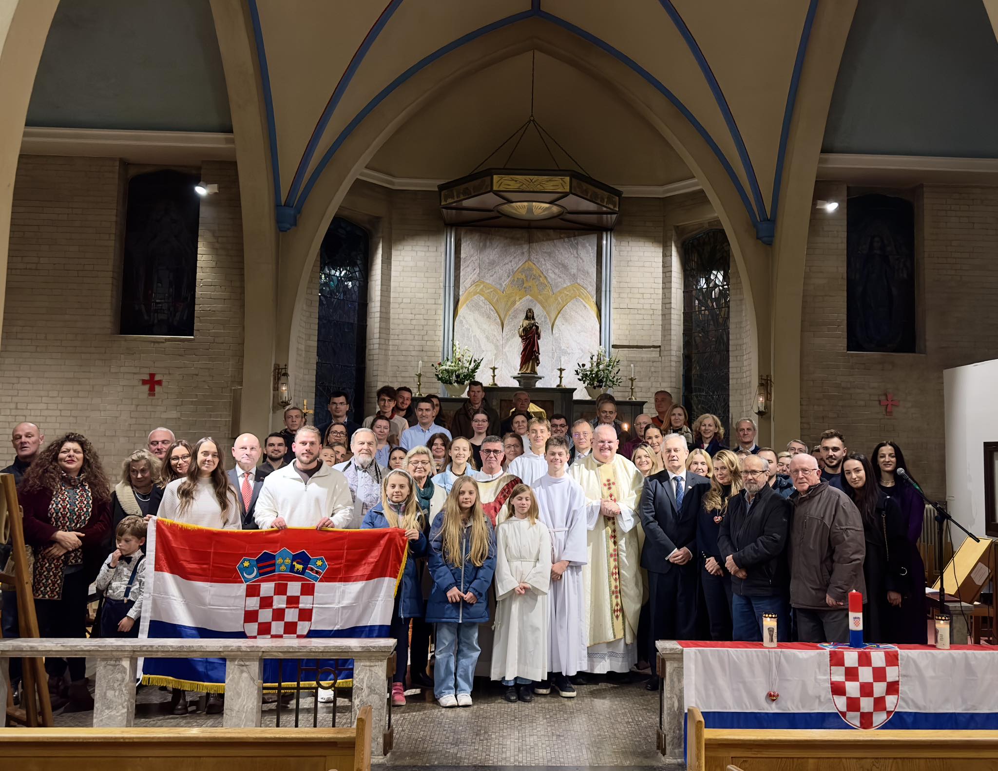 Euharistijsko slavlje predvodio je dr. sc. fra Siniša Balajić, provincijal Franjevačke provincije Presvetog Otkupitelja iz Splita, uz koncelebraciju fra Ljubomira Šimunovića, voditelja misije i delegata hrvatske inozemne pastve za zapadnu Europu.