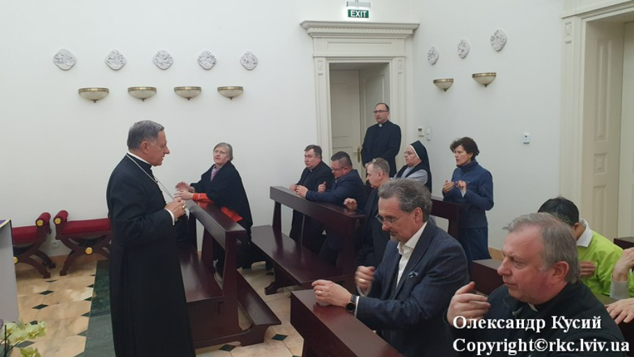 Tijekom molitve Anđeoskog pozdravljenja, lavovski nadbiskup Mieczysław Mokrzycki pozdravio je u Metropolitanskoj kuriji u Lavovu Anicu Djamić, veleposlanicu Republike Hrvatske u Ukrajini, izvijestila je Lavovska nadbiskupija.