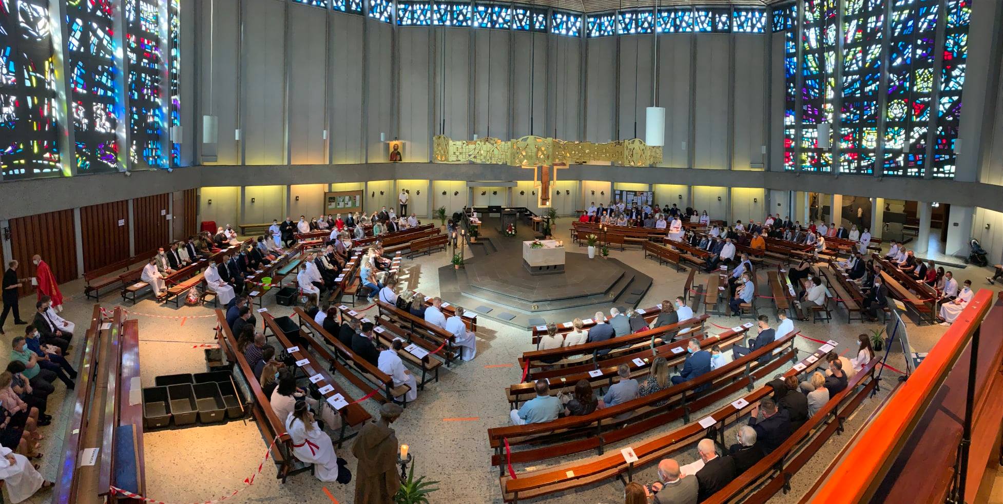 Vrhunac hodočašća bila je svečana sv. misa koju je uz koncelebraciju prisutnih biskupa i svećenika predvodio papin izaslanik – nadbiskup Nikola Eterović, nuncij u Berlinu. U katedrali, ukrašenoj zastavama Hrvatske i HKM-a Koblenz, vladala je jedna posebna atmosfera. Čitanja i molitva vjernika bili su na hrvatskom i njemačkom jeziku, a pročitala ih je župljanka Antea. Orguljaš i zborovođa Mario, svirači Diana i Đuro te solistica Mihaela, otpjevali su psalam na hrvatskom jeziku i pjesme za prinos darova.