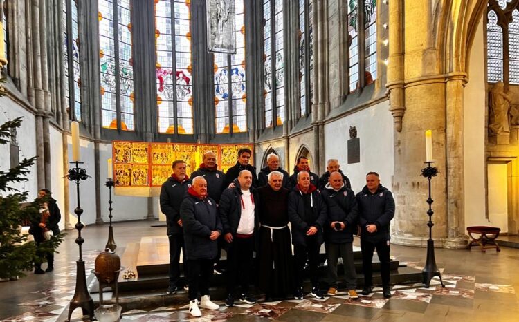 U njihovoj pratnji bio je i dr. Ivan Bulić, generalni konzul iz Düsseldorfa. Na kraju nedjeljne mise prisutne je pozdravio voditelj ove hrvatske katoličke misije u Njemačkoj, uručivši im prigodan dar i uputivši čestitke za sudjelovanje na Europskom prvenstvu u Kölnu.